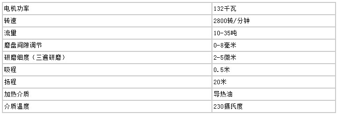 高速剪切均化磨技術(shù)參數(shù)(30T/小時(shí))